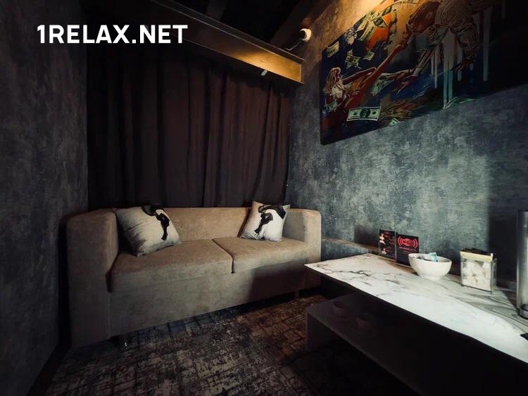 К услугам гостей четыре просторные комнаты с изысканным интерьером в тёплых тонах по стилю лофт. Для сеансов в массажном салоне установлены массажная кушетка, подиум под пенный массаж, 2х спальная кровать-кушетка. Для водных процедур предусмотрен душ.